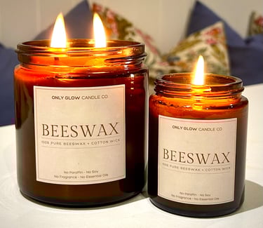 Only Glow Candles are hand-poured into heat proof amber jars to accentuate their incredible natural golden glow when lit and make them fit beautifully into any home. Made with only the best, ethically sourced beeswax and a pure cotton wick.